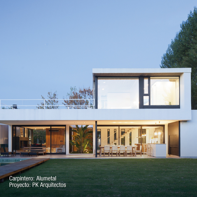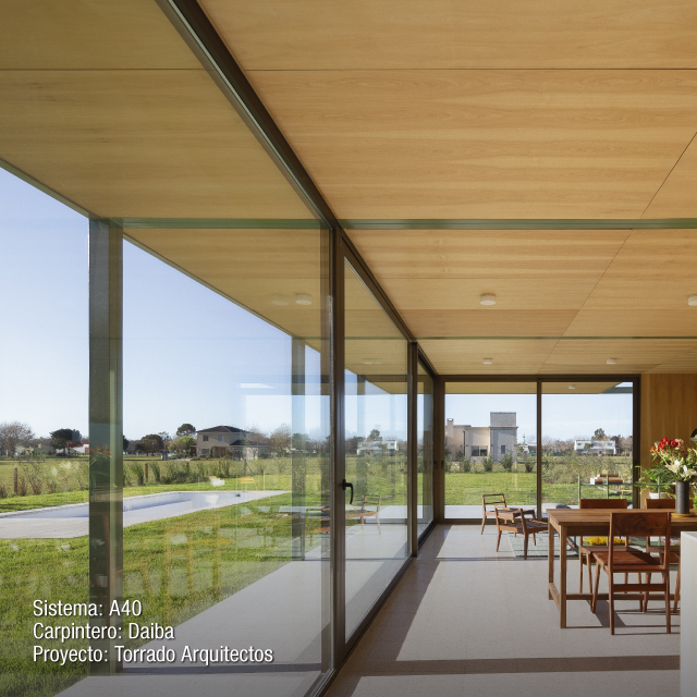Por ejemplo, la tipología Corrediza de 4 guías del Sistema A40 de Aluar, es una opción ideal para ser usada en livings, salones de usos múltiples (SUM), y quinchos, porque al permitir un corrimiento total de las hojas, brinda una apertura máxima, logrando una conexión y fluidez del espacio interior con el exterior y generando una gran sensación de amplitud y continuidad. ver video