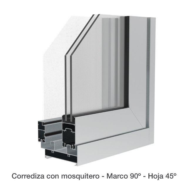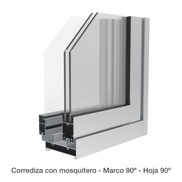 Permite la utilización de Marcos de corrediza en 2 y 3 hojas con guía de mosquitero incorporada.