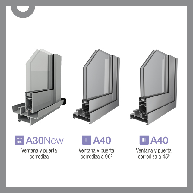 A30 New, una línea lanzada en 1998 y que tuvo gran éxito e utilización en el mercado, tiene una estética con bordes redondeados y un umbral con tapones que quedan a la vista en la parte inferior y superior. Además, sus perfiles son más anchos, lo que genera menor vistas del vidrio y por lo tanto, del paisaje exterior. Las tendencias actuales van más en línea con la estética que propone la línea A40, lanzada en 2015 como una renovación total de A30New. Sus bordes rectos, su menor superficie vista de aluminio, sus altos grados de resistencia y un exquisito diseño minimalista, lo hacen ideal para responder a las tendencias en arquitectura e interiorismo actuales.